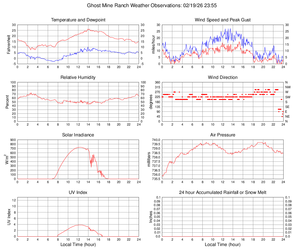 Temperature (F) 15.0 7.6 @ 02:35 26.1 @ 13:55 16.9